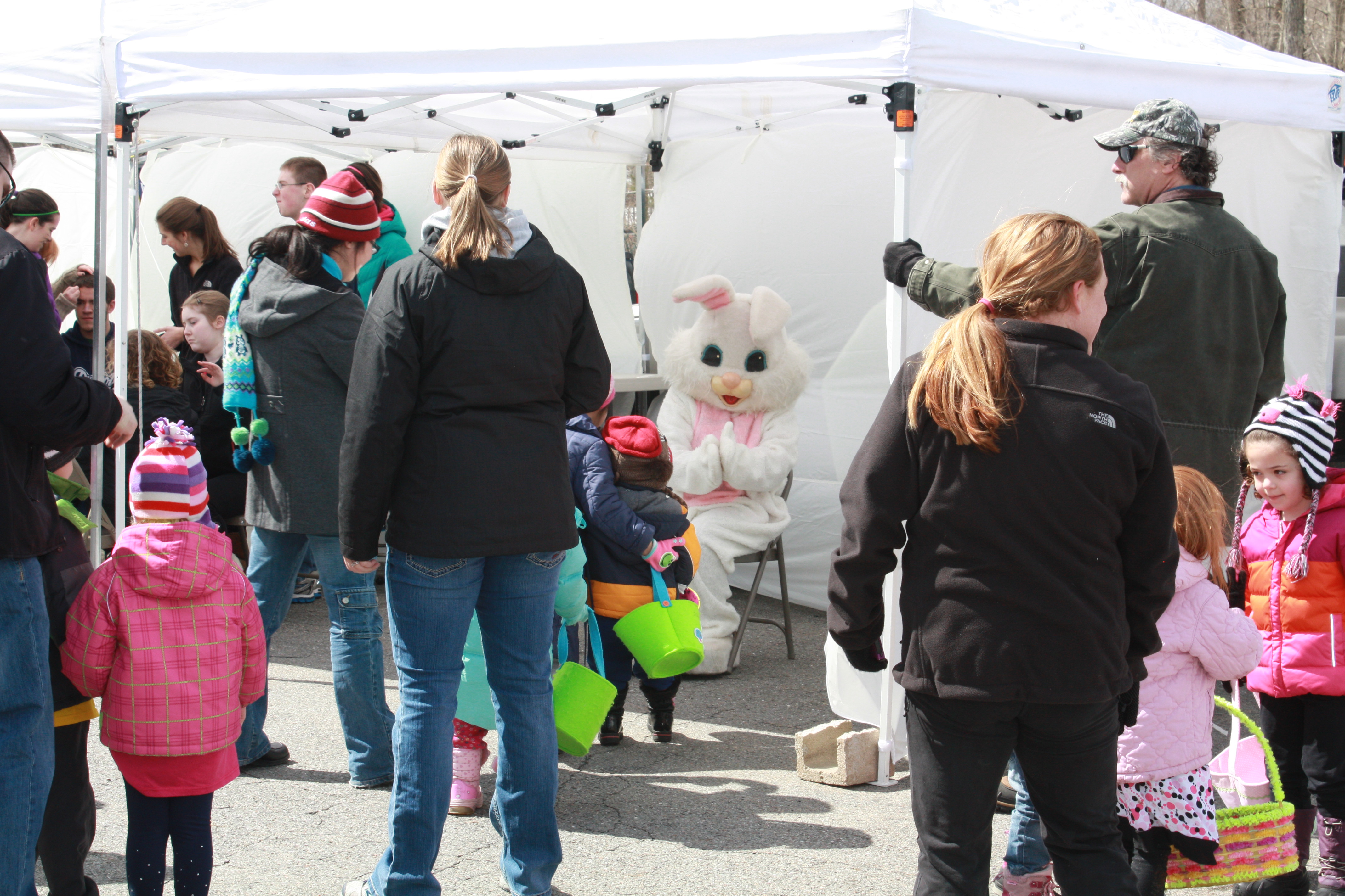 Before the hunt began the children lined up to have their photo taken with the Easter Bunny. They also could have their face painted by students from Nipmuc High School National Honor Society and Impact Team who had volunteered to help with the event.