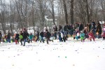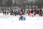 Though the temperature was only in the low 30’s and the field was covered in snow the hunt went off as scheduled at the VFW ball field.