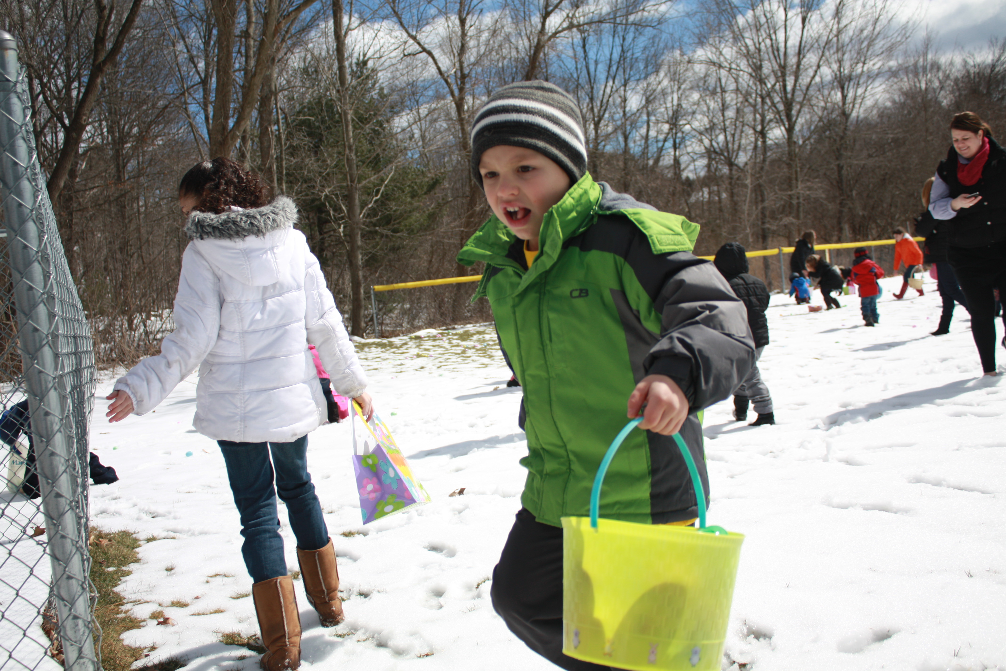 The children of Upton were bundled in their warm coats ready to run and find the eggs. Matt Ronzio of the Upton Men’s Club stood in front of this tiny person crowd and began the countdown – 10, 9, 8 the crowd joined, the count got louder, you could feel the excitement in the air… 3, 2, 1 … the kids were off. The children smiled and laughed as they scouted the field for the colorful eggs. What a fun day.