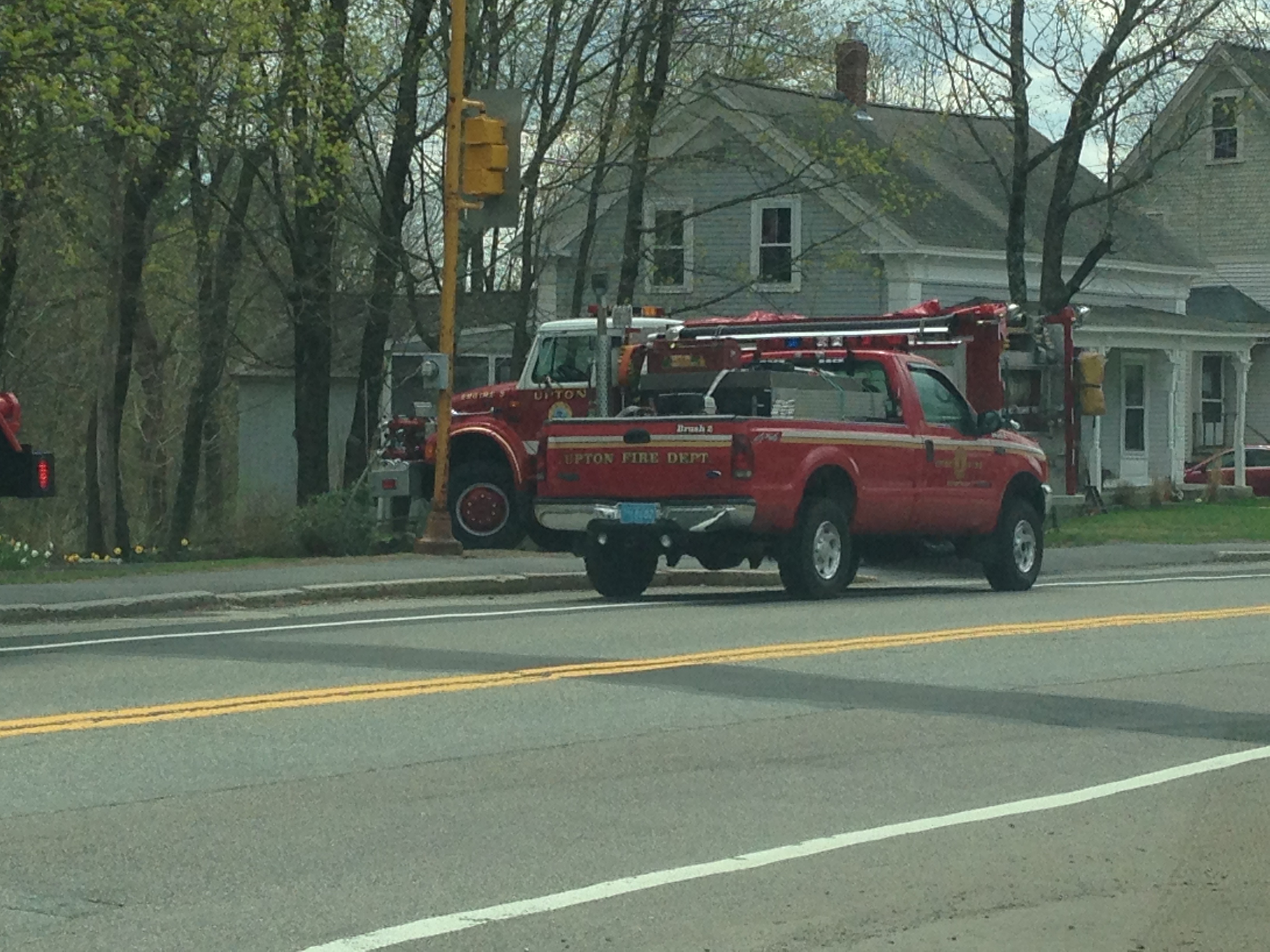 The Upton Fire Department is extinguishing what appears to be a small brush fire between Main and Pleasant street. This is behind a home which is across the street from Memorial School… Memorial School parents there is no need to be concerned the fire is small, across the street from the school and a good distance behind the house. The fire appears to be contained.