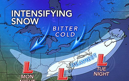 The national weather service has issued a winter storm warning for our area. The warning is in effect from 1 p.m. on Tuesday continuing into Wednesday. Heavy snow is predicted with accumulations between 4-8 inches.