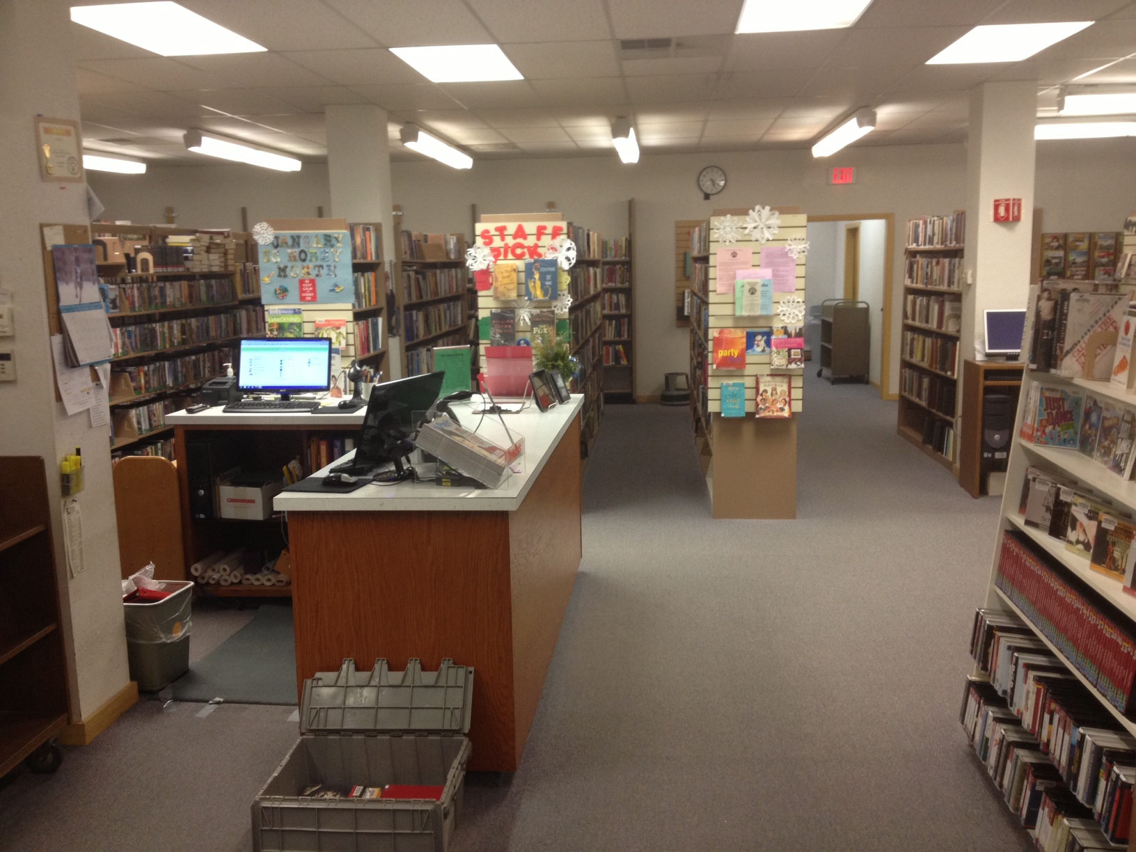 Upton Town Library in need of Circulation Desk – Old Circulation desk removed, waiting for a replacement, March 2014