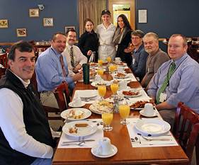 This year’s breakfast was prepared and served by Culinary Arts juniors and members of the Friends of Rachel Club (back row, left to right) Lauren Mahoney of Sutton, Britney Hjort of Millbury, and Krista Decarlo of Milford.
