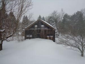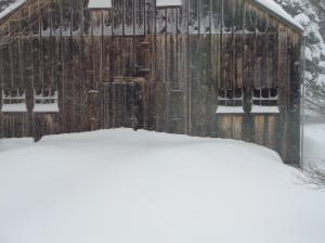 Ridge Road Barn by Ellen Arnold – snow is almost to the lock on the barn door