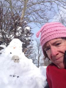 Blizzard of 2015 gave the snowman a mohawk and he looks like he is chilling in a snowtub – photo by Cheryl Kilcoyne