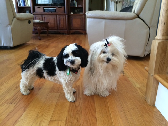 Little dogs are known to travel in a 1 mile radius from where they left.  They typically circle the area.  When Upton Daily wrote to the community for help finding Bailey, one of my neighbors left a comment under her picture stating the last place she was spotted.  I read that comment at 2:00 AM (hard to sleep when you are missing a best friend).  Since it was cold and rainy during the day, the dog officer “Mike” thought she would not come out and just “hunker down”.  I went with that thought thinking she didn’t get far since the sighting and drove to the address (at 2:00 AM.  Dogs travel at night when it’s quiet and she was probably very hungry). I called for her and listened—nothing.   So I took a bowlful of kibble and dropped one kibble at a time leading to my driveway.  I left her pee pad that was soiled, out by the driveway hoping she would smell that and recognize the smell.  The kibble led to the open garage and there she was at the door waiting to come in.  The kibble was gone.  So I guess she ate her way back!  We are thrilled with this happy ending.  Here is her picture with her sister “Maggie”.  They were told to smile pretty for this picture and here is their pose.  Thank you Jennifer, Upton Daily, and the caring community!