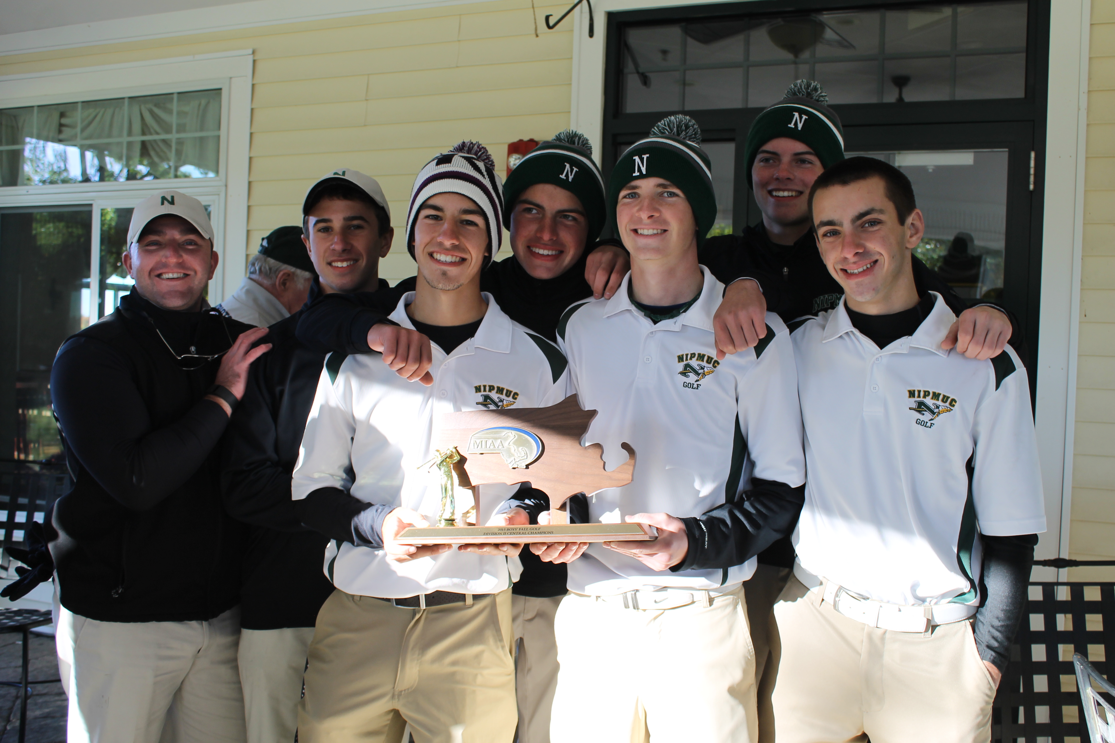 The Roster of the Nipmuc Golf Team is comprised of 15 players, Cole Alibozek, Justin DiAntonio, Josh Kossuth, Kyle Downing, Sean Downing, Jake Osgood, John Dacey, Davin Fazio, JP Lucier, Noah Puchovsky, Trevor Moutinho, Brandon Lefebvre, Matt Benoint, Conor Morford, and Rutger Mosher under the instruction of Coach Ryan Cody.