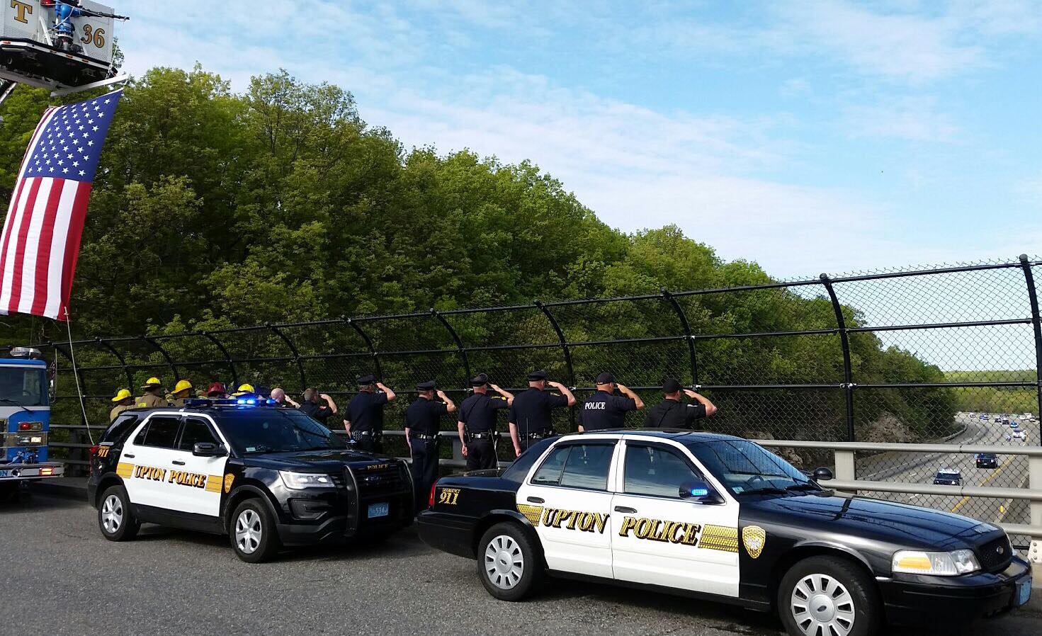 13247859_1074769539259381_8913652098430978922_o May 22, 2016 Return to: Officers from Upton, Mendon & Hopedale Police were joined by Upton Fire on the I-90 overpass to pay tribute to fallen Auburn Officer Ronald Tarentino JrFull resolution (1471 × 898) Image navigation Previous Image Next Image