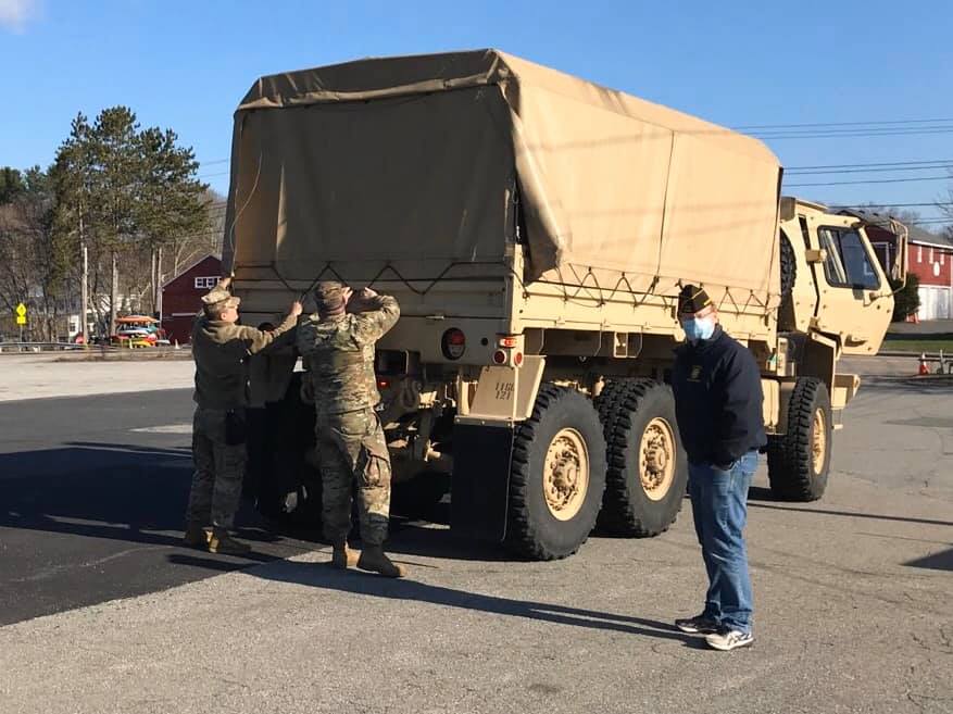 We are all proud to be part of MEMA’s COVID-19 Procurement/Program. VFW District 8 Commander Joseph McMahon and Post Commander Shawn Craig greeted members of the National Guard this morning as they picked up PPE supplies from Upton VFW Post 5594.