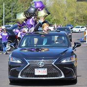 Families were assigned an arrival time and asked to stay in their vehicles. To enter the driveway near the digital sign, plan to pull around the building heading towards the t-shirt distribution tent set-up outside of the fitness center. The parents were aware that they were part of a celebratory procession of vehicles that would slowly roll around the building. They arrived in true BVT fashion; with parental pride, on full display, the car décor was on point, and creativity did not disappoint.
