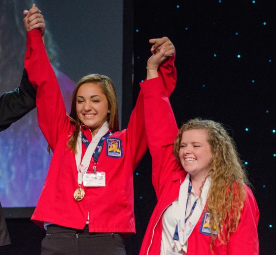 Valley Tech gold medalist and Culinary Arts senior Rebecca Rose (l) with silver medalist and Culinary Arts junior … More