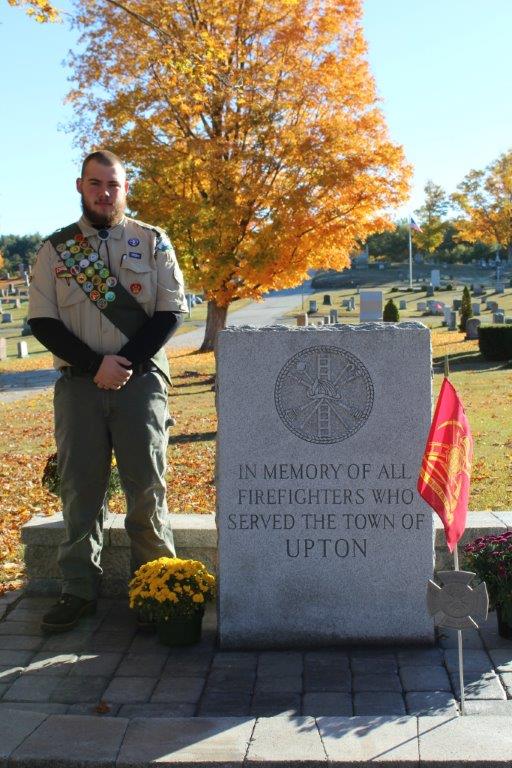 Russell Poirier stands next to the Upton Firefighters Monument located at Lakeview Cemetery The Upton Firefighters Monument was placed at … More