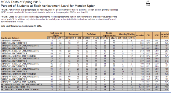 The Massachusetts Department of Education released the 2013 MCAS scores, a state-wide standardized test of a school district’s performance. Measured … More